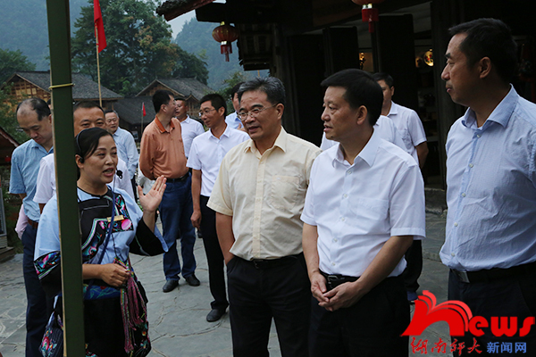 仪式后,蒋洪新一行在吴凌频的陪同下前往十八洞村学习考察精准扶贫经验。蒋洪新一行走村串户,边走边看,重温了习近平总书记提出的“实事求是、因地制宜、分类指导、精准扶贫”的要求,认真了解十八洞村精准扶贫经验,实地感受十八洞村的喜人变化。