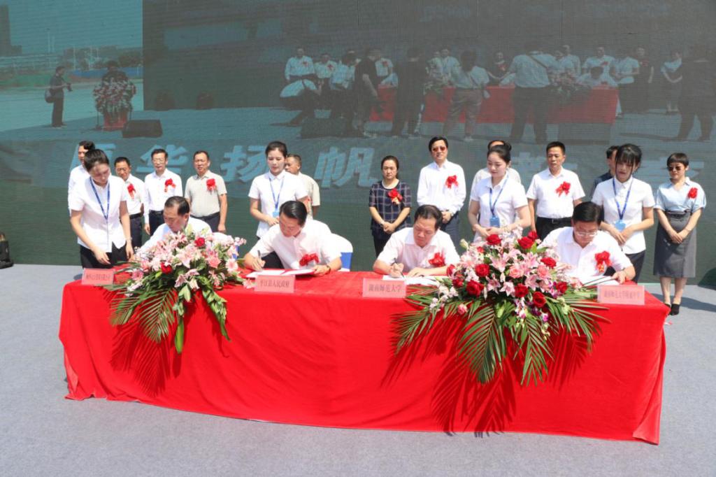 刘起军指出,在迎接新中国70华诞的喜庆时刻,我们怀着对革命老区的深厚感情和服务基础教育的光荣使命,将基础教育办学资源带到平江,携手县人民政府和颐华大江投资有限公司合作办学,并共同出资2000万元人民币设立专项基金,用于奖教奖学和资助家庭经济困难学生。刘起军强调,我校将认真落实合作办学协议,一是做好品牌赋能,充分彰显基础教育品牌在湖南乃至全国的示范作用;二是强化师资赋能,派驻管理干部和骨干教师,推荐优秀毕业生扎根基层任教,全面加强师资培训;三是开展资源赋能,搭建起包括大学、附属中小学以及其他合作校在内的教育、教学、教研资源分享平台,促进教育资源优质均衡发展。