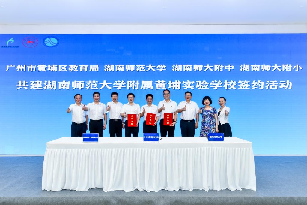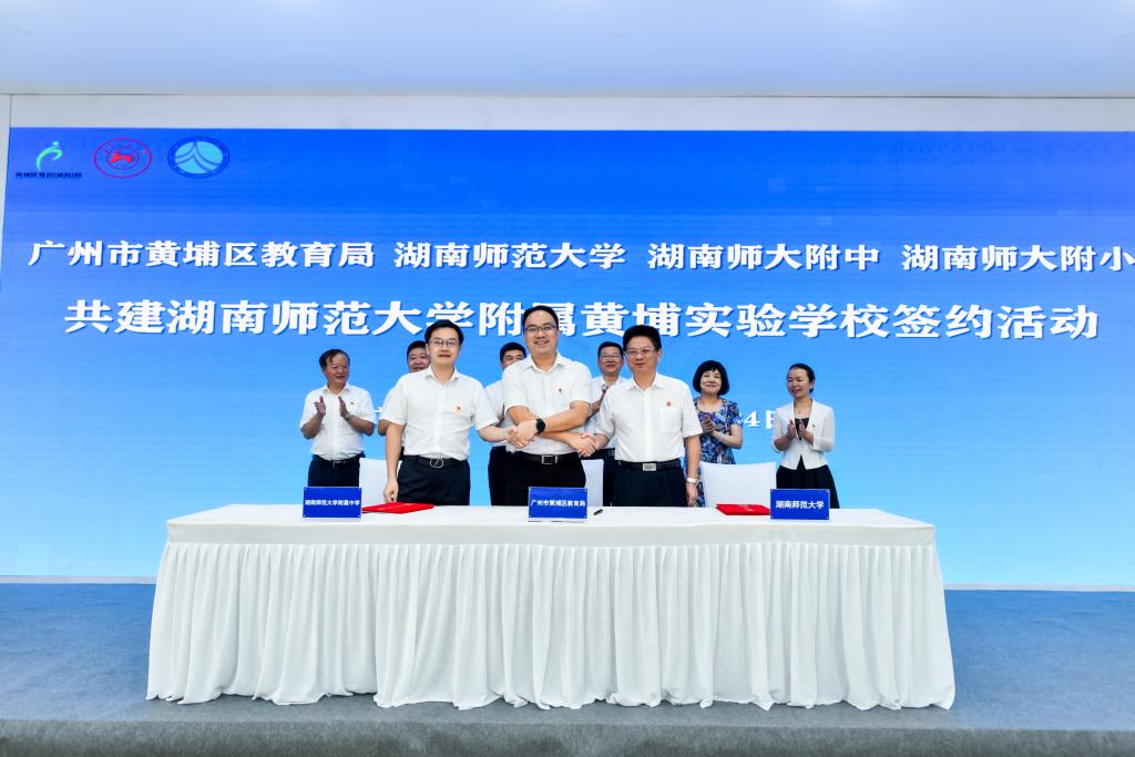 (通讯员王政)9月24日上午,我校与广州市黄埔区教育局合作共建湖南师大附属黄埔实验学校签约仪式在广州科学城会议中心举行。副校长唐贤清,广州开发区党工委委员、管委会副主任刘石参加签约仪式并致辞,唐贤清与附中党委副书记彭荣宏代表我校与黄埔区教育局党组书记、局长何宇鸿签约。