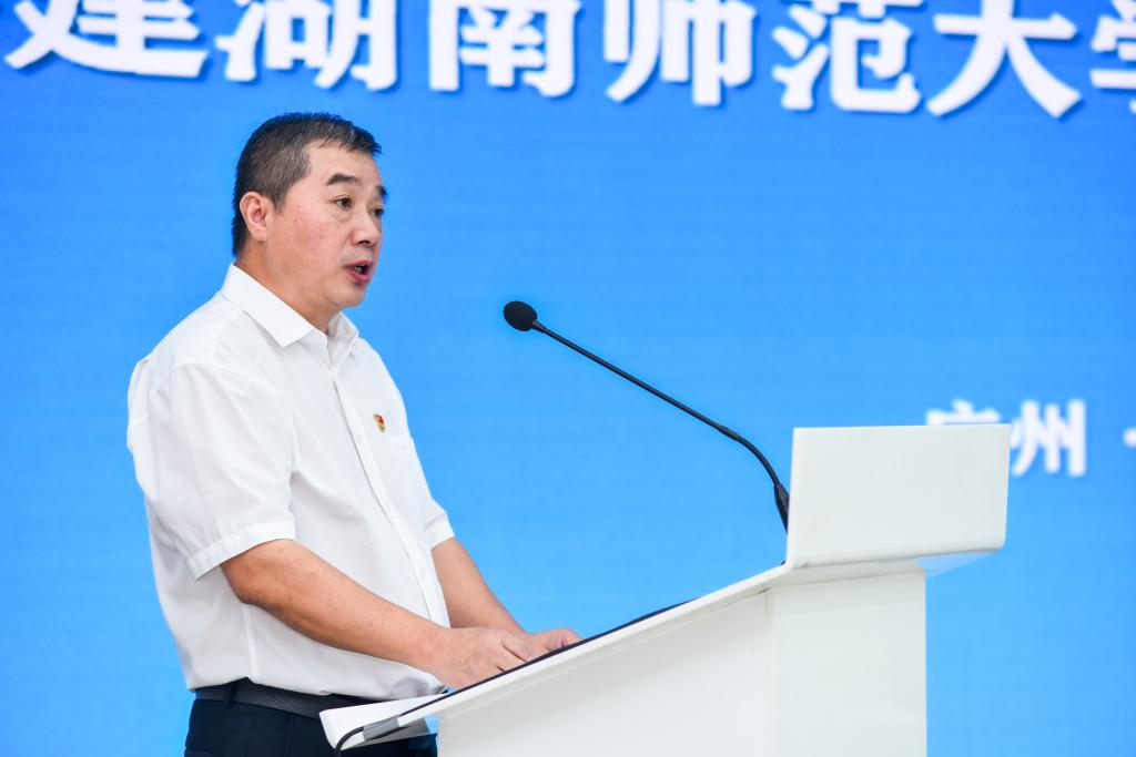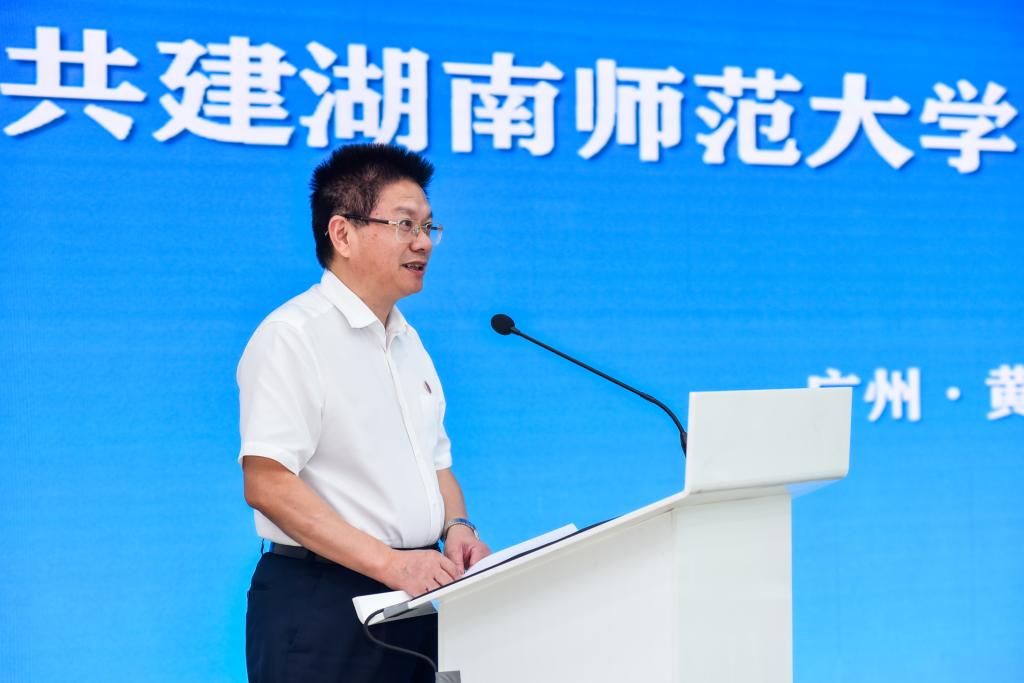 唐贤清对黄埔区人民政府、广州市开发区党工委管委会对我校的信任与支持表示感谢,对合生创展集团高度的社会责任感和教育情怀表示敬意。他说,湖南师大与黄埔区的合作办学,是知识背书与活力发展完美结合的典范。附属黄埔实验学校的合作共建,是黄埔区贯彻“优化营商环境,文化就是刚需”理念的深度实践,也是民生答卷温暖人心的生动体现。未来,我校将进一步以品牌引领学校起步开局,整合平台资源,持续供给优质教育资源,形成聚合效应,努力将这所新学校办出水平,服务黄埔区乃至广州市经济社会发展。。