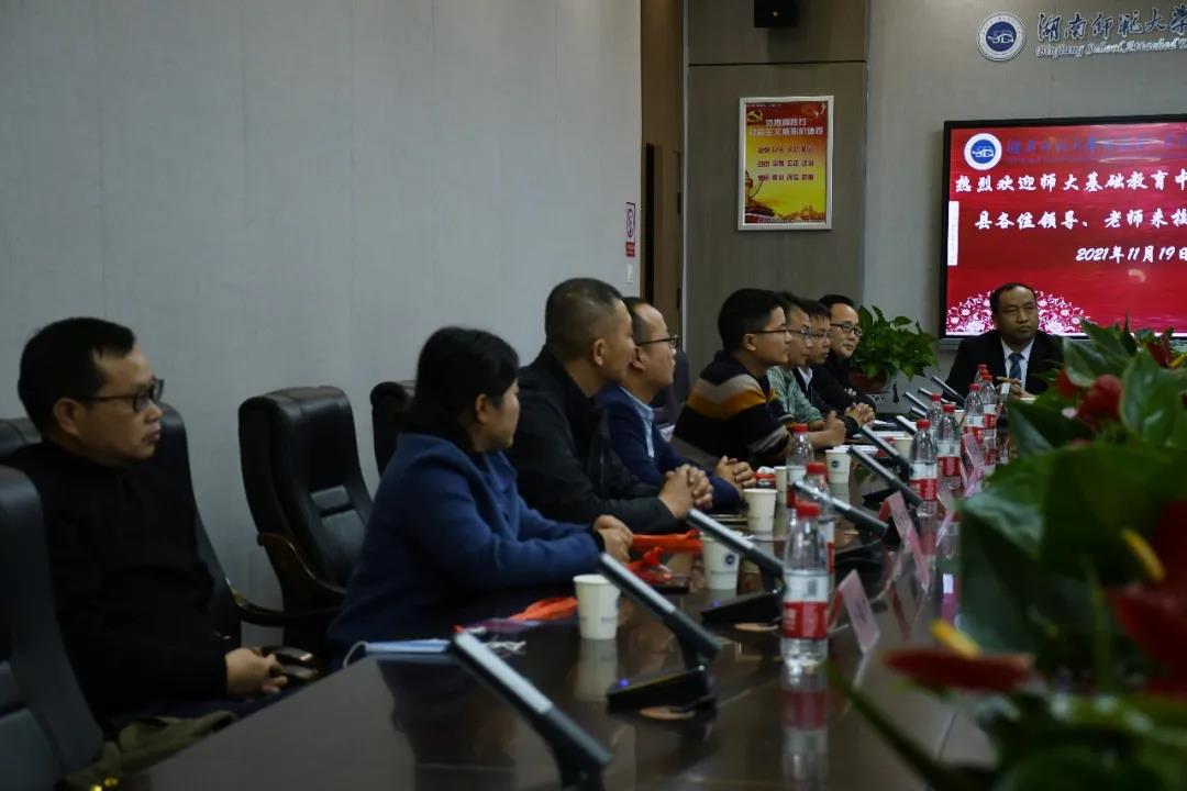 (通讯员 廖涵)近日,根据我校与绥宁县人民政府教育援助协议约定,绥宁一中、绥宁县实验中学的七位教师在绥宁县教育局邹建新副局长的带领下,到我校附属学校师大附中、师大二附中、师大滨江学校开展为期一年的跟岗学习。11月19日下午,我校基础教育发展中心副主任杨栋在师大滨江学校与绥宁跟岗干部教师举行欢迎见面会,师大滨江学校校长、党总支副书记喻志军,党总支书记、副校长吴虎强,副校长刘娥,师大附中集团办公室副主任罗勇,师大二附中课程教学处主任夏友才出席见面会,热情接待了各位来宾。