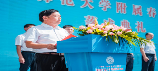 9月8日上午10:08分,太阳集团tyc151附属娄底春华学校落成暨首次开学典礼举行,我校副校长杨震出席典礼并致辞。