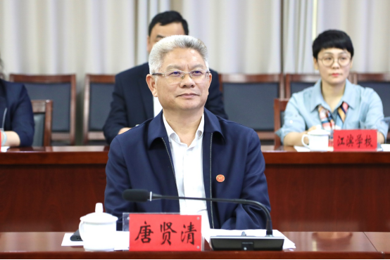 唐贤清对湘潭市以及岳塘区、岳塘经开区对我校的信任表示感谢。他说,湖南师大自创校开始就高擎师范教育大旗,始终高站位服务教育强国、科教兴国战略,坚持不断强化教师教育的地位和作用,为促进湖南基础教育改革发展和地方经济社会发展做出了积极贡献。唐贤清强调,在全党深入开展学习贯彻习近平新时代中国特色社会主义思想主题教育之际,推动岳塘区项目合作,意义尤其重大和深远。他表示,湖南师大将认真落实合作办学协议,切实履行责任和义务,努力把新学校办出特色、办出水平。