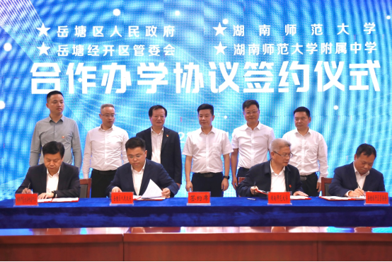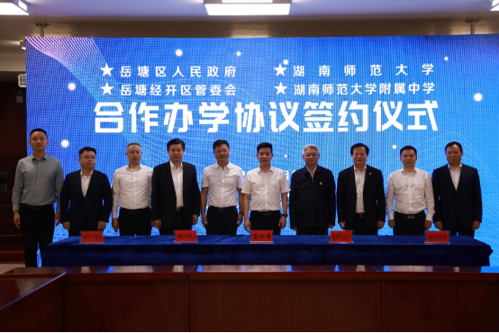 5月9日,我校与湘潭市岳塘区人民政府、岳塘经开区管委会签署合作办学协议,在岳塘区合作共建太阳集团tyc151竹埠港实验中学。副校长唐贤清出席签约仪式并代表学校签约,湘潭市副市长周艳希,湘潭市教育局党委书记、局长唐正武,岳塘区委书记、岳塘经开区党工委第一书记曾志君,岳塘区区长周赏玲等出席相关活动。