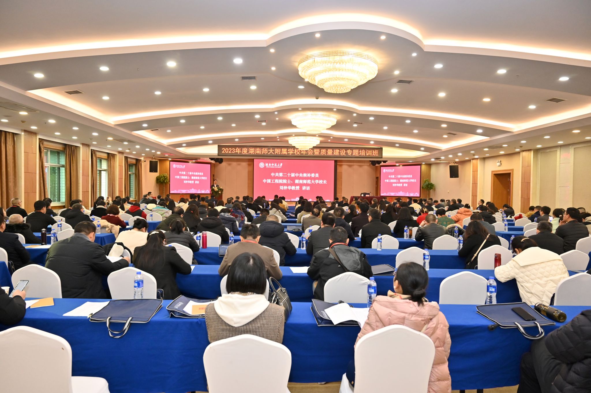 近日,我校附属学校2023年度年会暨质量建设专题培训会在长沙举行。第二十届中央候补委员、中国工程院院士、校长刘仲华,副校长唐贤清出席相关活动并讲话。