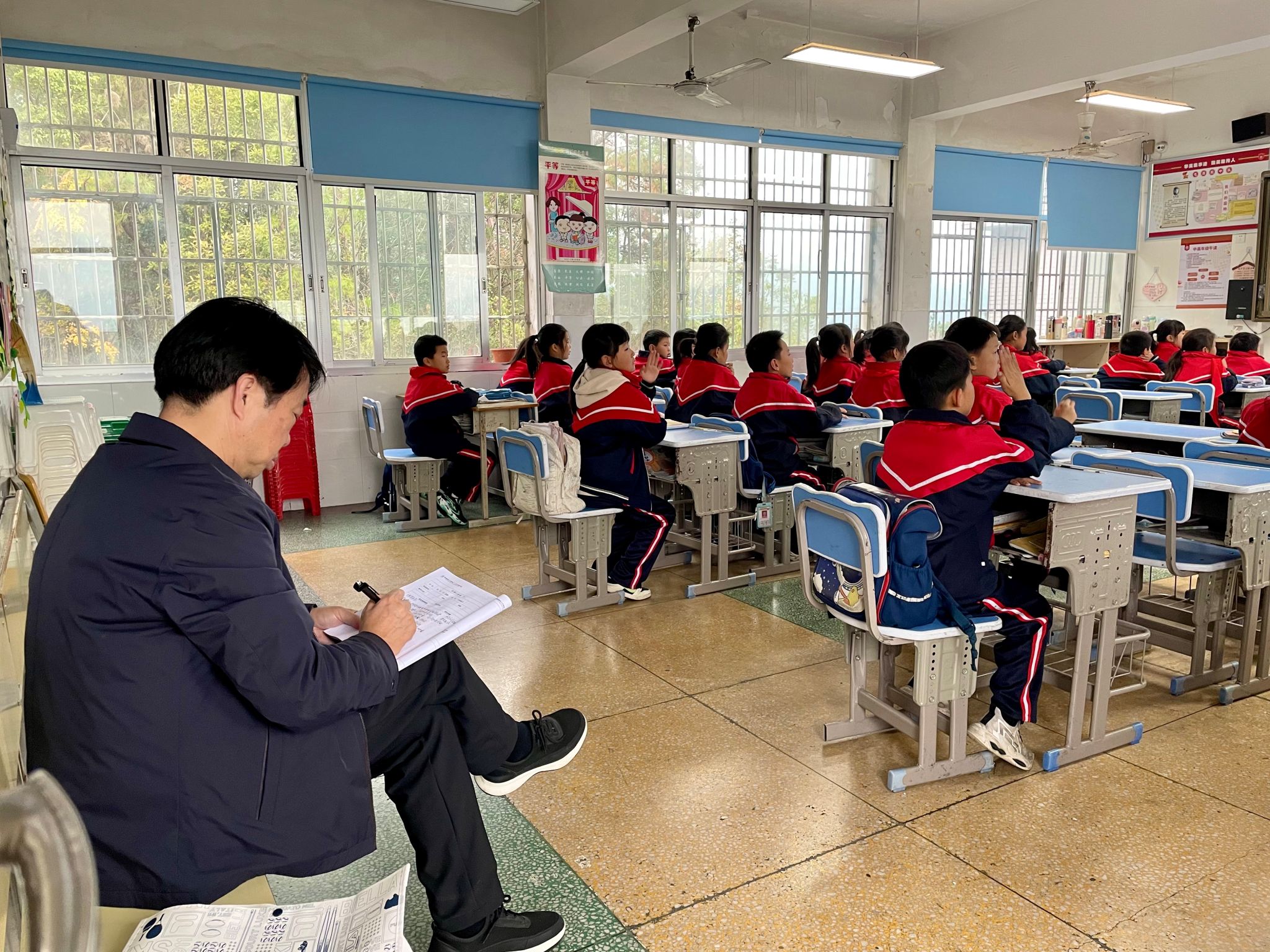 驻校期间,专家通过座谈、研讨、观课议课、专题讲座等形式与学校行政团队、教研骨干交流了德育课题、心育课题研究的相关工作,观摩了小学部跳绳专项运动会,其中对语文组进行了重点点评和指导。专家们从教师对新课标的把握、语文核心素养等方面进行评课议课,点评精准。宋跃庆以《让学生在场 让素养落地—核心素养视域下教学评一体化的实施》为主题的业务培训,向老师们传输着先进的教育思想和理念,为全体教师的教育教学打开了新的思路。谢旭华从“进一步打造学校红色教育特色,立足红色基因,提升文化品质。进一步加强研训工作,扎实进行教学研究,提升教师综合素养。进一步落实精细管理,强化学生自主管理,持续发力养成教育”三个方面,对学校的高质量发展提出了宝贵的建议。