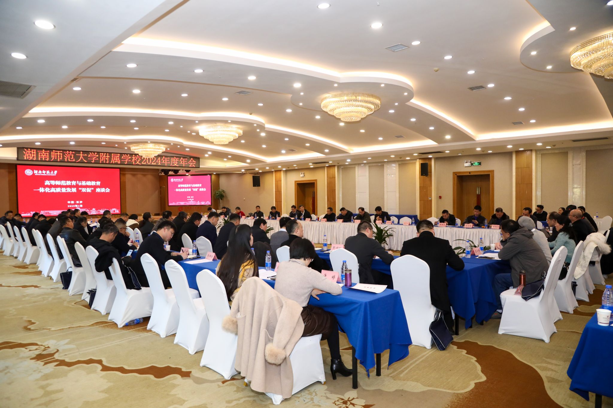 2024年年会围绕“一体化”关键词,突出了加强大学部和基础教育学校协作协同,深化促进高等师范教育和基础教育一体化高质量发展主题。年会上, 举行了高等师范教育与基础教育一体化高质量发展“双促”座谈会,我校地理科学学院、化学化工学院等12个学院负责人与会, 同各附属学校负责人就拔尖学生培养、师范生教育实习实践、中小学教师培训与学历提升、教育教学科研等方面进行了深入交流, 探讨了如何充分利用湖南师大高等师范教育和基础教育“兼具”的优势,共享平台和资源,共促双方的高质量发展。