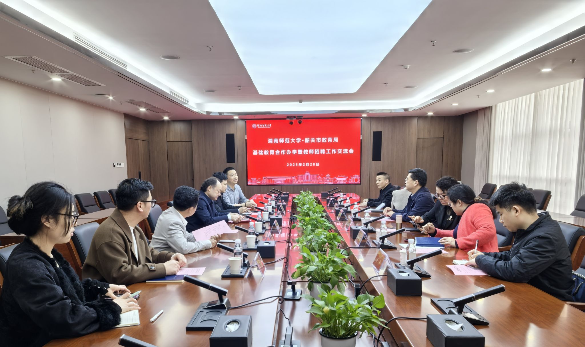 2月28日,韶关市教育局党组书记、局长黄令遥一行来访,就基础教育合作办学及教师招聘工作开展调研交流。基础教育发展中心主任蔡炳华与黄令遥一行在科研楼402会议室举行座谈会,座谈会由中心副主任杨栋主持。