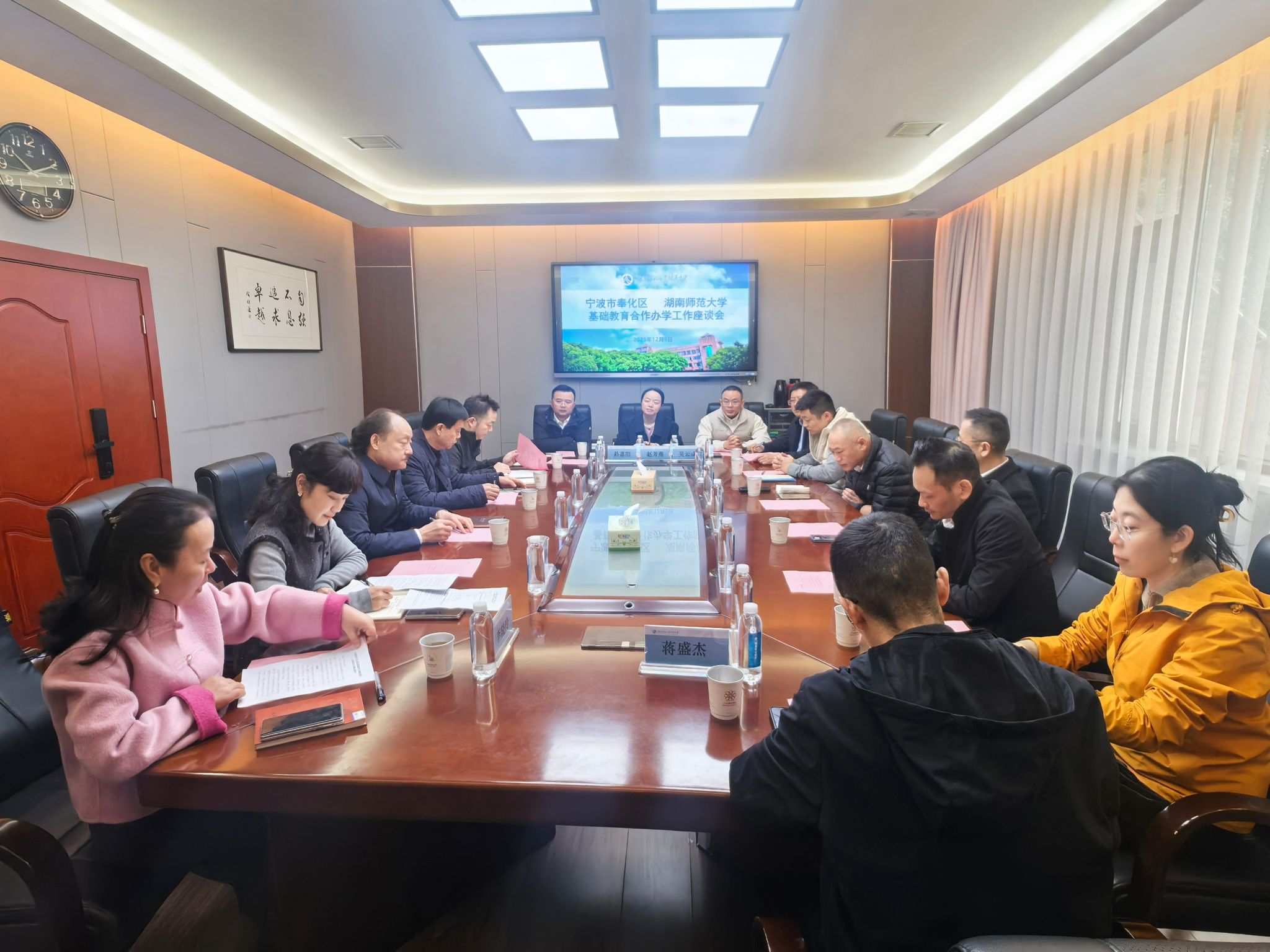 我校基础教育发展中心及附中、宁波市奉化区教育局、中交城市投资(宁波)有限公司相关人员参加了座谈会。