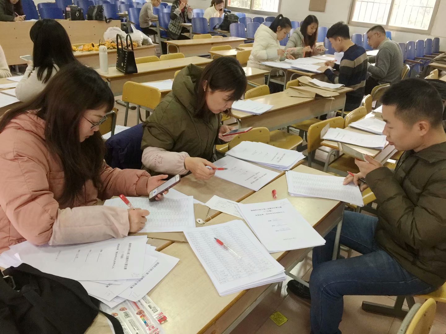 12月20日中午每位小朋友早早来到学校,积极地为口算比赛做准备,2时30分口算正式开始。比赛分为三个阶段:第一阶段主监考发试卷(1分30秒);第二阶段写姓名班级学号(45秒);第三阶段答题(10分钟),比赛还剩一分钟的时候,广播进行提示。整个比赛过程气氛紧张、严肃、认真,每位赛手全神贯注地计算,专心致志地检查。口算比赛结束后数学组老师立即在北楼多媒体教室进行交叉阅卷、统分、登分、排名,登记获奖名单。