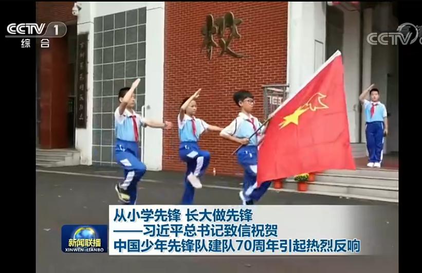10月14日,中央电视台《新闻联播》对全国各地的中国少年先锋队建队70周年庆祝活动进行专题报道,我校附小此次建队纪念活动在其中领航亮相。