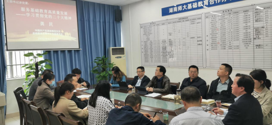 117日下午,基础教育发展中心党支部开讲学习贯彻党的二十大精神系列党课,中心主任、支部书记龚民主讲了第一课:“服务基础教育高质量发展”。机关党委副书记粟用湘以普通党员身份参加。