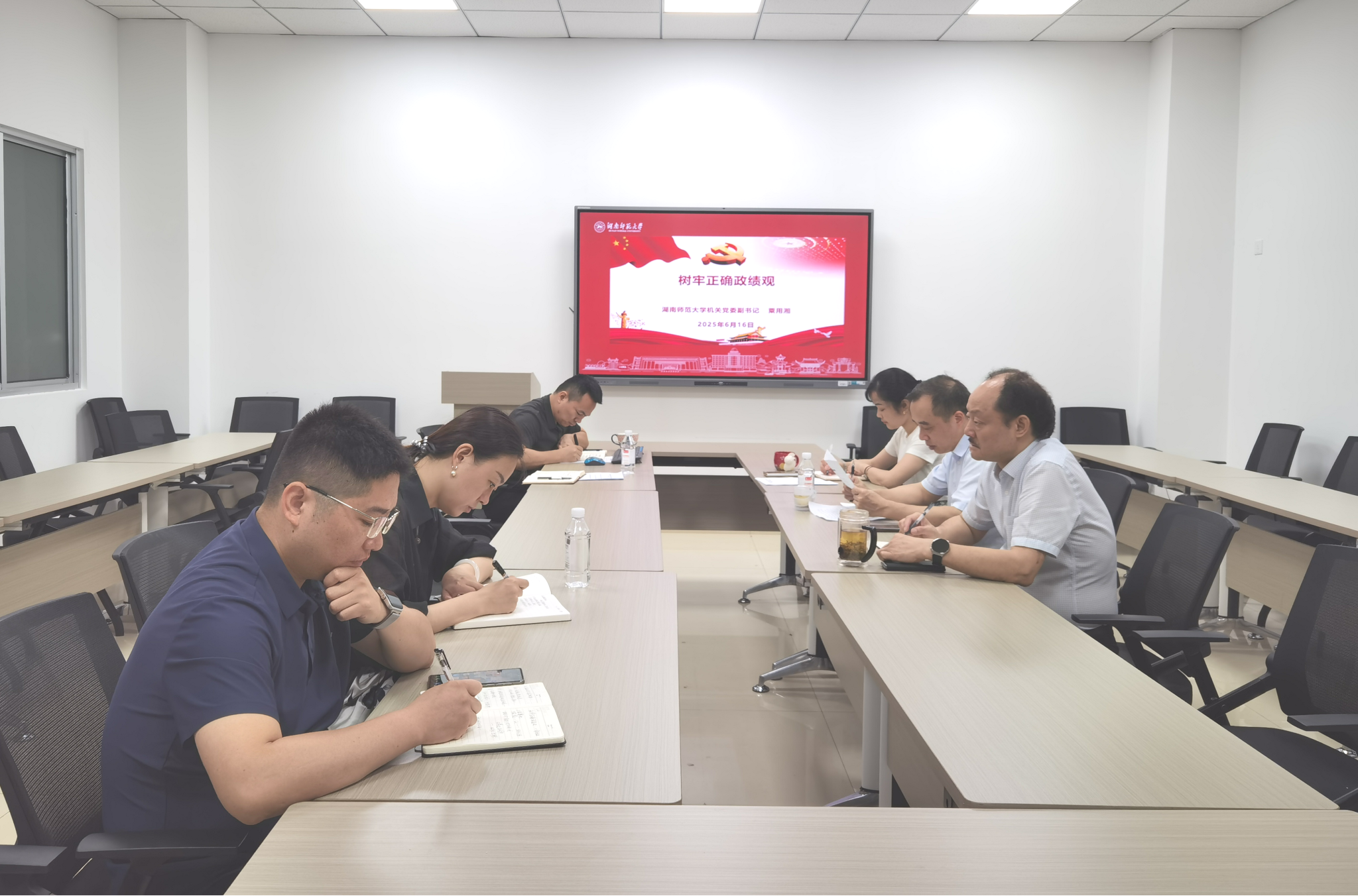 6月16日上午,基础教育发展中心党支部在中心会议室开展深入贯彻中央八项规定精神集中学习暨党员基本培训第一课交流研讨。机关党委副书记粟用湘以普通党员身份参会,并为支部讲授专题党课。会议由中心主任、党支部书记蔡炳华主持。
